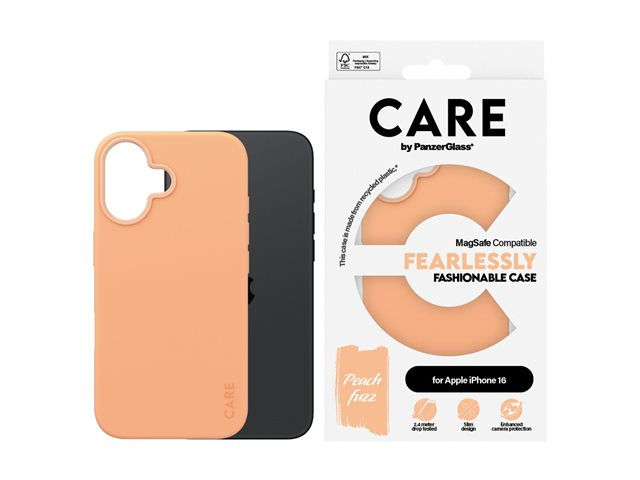 MagSafe-kompatibilitet - polycarbonat (PC), termoplastisk polyuretan (TPU), mikrofiber, oleofobisk belægning - ferskenagtig, ferskenplys - for Apple iPhone 16