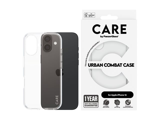 Bagsidecover til mobiltelefon - termoplastisk polyuretan (TPU), polycarbonat (PC), oleofobisk belægning - gennemsigtig - for Apple iPhone 16