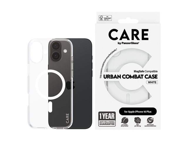 Bagsidecover til mobiltelefon - MagSafe-kompatibilitet - genbrugt plastik - gennemsigtig, hvid - for Apple iPhone 16 Plus