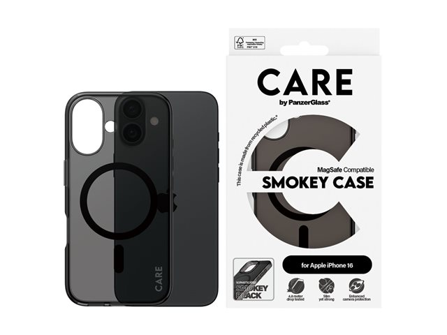 Bagsidecover til mobiltelefon - MagSafe-kompatibilitet - oleofobisk belægning, termoplastisk polyuretan (TPU), polycarbonat (PC) - røget sort - for Apple iPhone 16